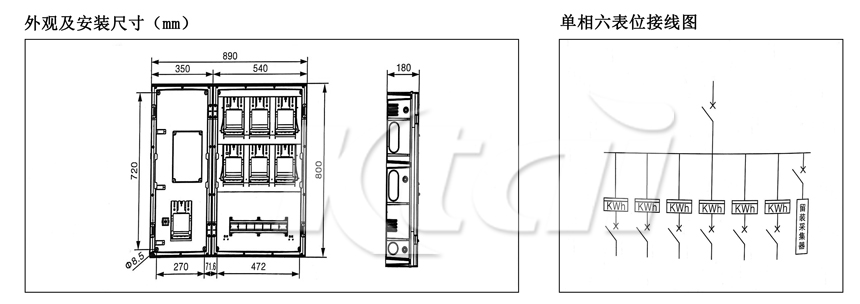 KT-PA-D601N单相六表位国网新标准PC+ABS电能计量箱